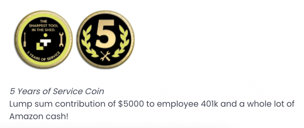 Each coin, which we call “Power Coins”, has its own meaning and reward attached to it. In order to earn coins, employees must be nominated by a fellow team-member, it must be approved by management, and then the coin is sent to them, along with the reward it carries. We also have tenure coins that go out to everyone. Here are a few examples: