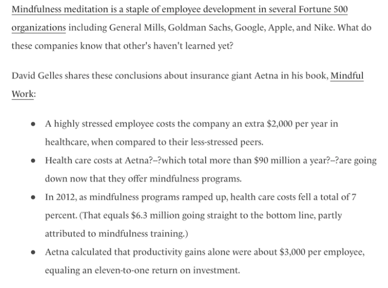 Since we launched our Wellness Roadmap last Fall, mindfulness has been one of the top priorities. There is undeniable evidence coming out about not just the personal benefits of practicing mindfulness, but the professional ones as well. In addition, companies save money when programs like this are implemented.